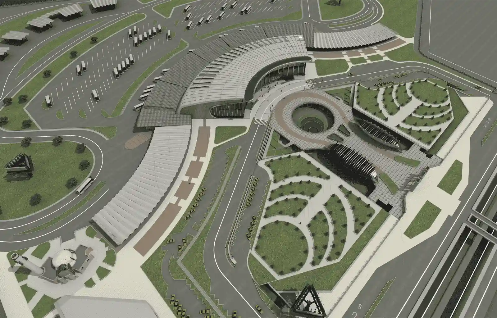 طراحی پایانه مرکزی تبریز با فرم منحنی مدرن، استفاده از شیشه و سازه فضایی و پوشش های زیپ پانل منجر به خلق فضایی دعوت‌کننده، باز و شفاف برای تسهیل حرکت و ارتباط بصری شده است.